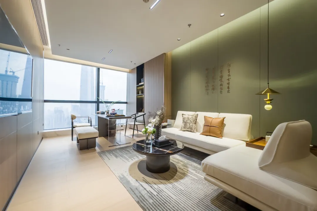 在项目招商人员的指引下,广东源海置业领导一行重点参观了宸胜国际中心45F招商中心、15F精装样板间、14F共享空间,双方就项目整体情况、招商运营现状、楼宇空间规划以及物业服务管理等多个维度进行了深入的沟通和交流。