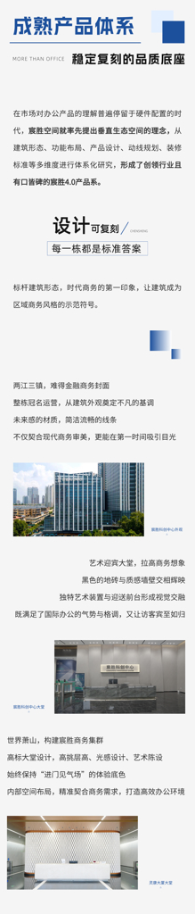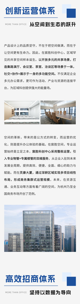 打破传统写字楼服务边界,在“有限空间"里实现资产端、企业端和用户端的“无限创赢”,使资产效能及持续价值最大化。